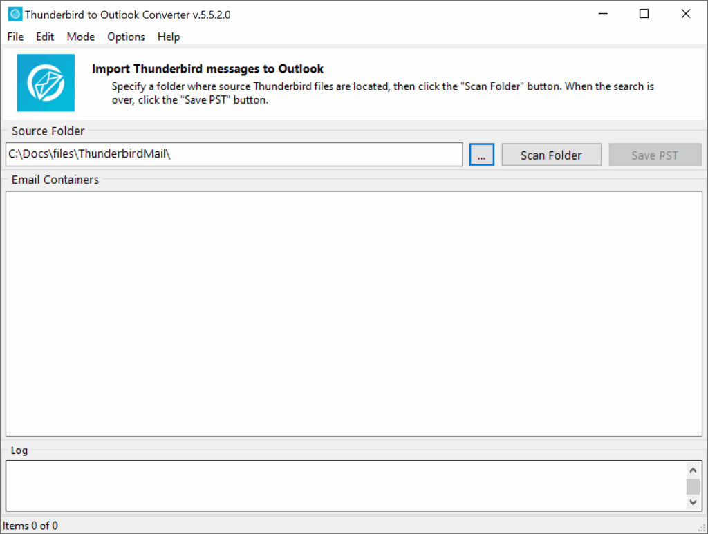 Thunderbird to Outlook Converter is a software tool to import your Thunderbird mailbox to Outlook PST file or export messages to EML files.